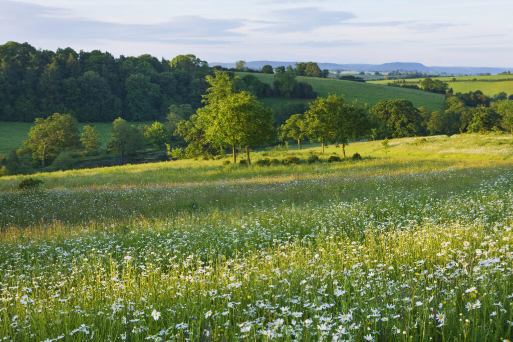 - Extensive planting including wildflower meadows, orchards, and woodlands